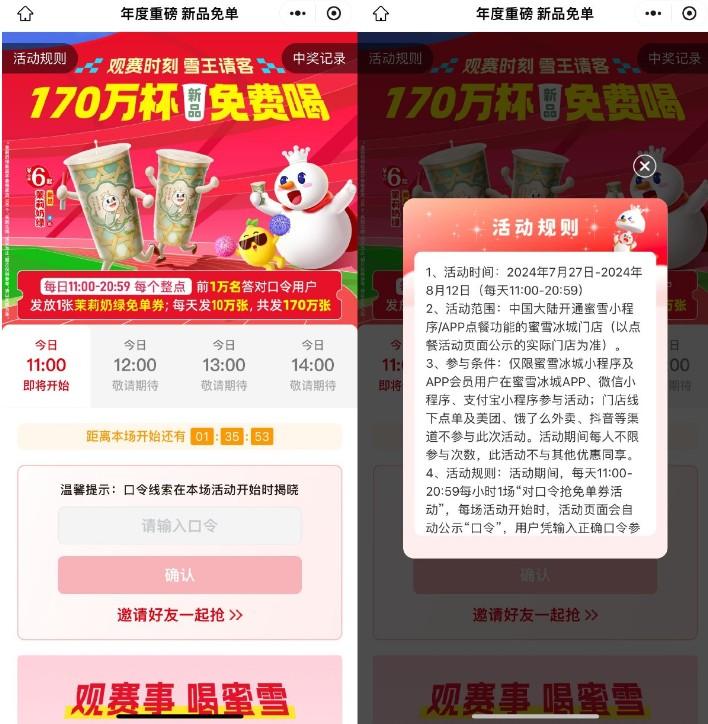蜜雪冰城口令领茉莉奶绿免单