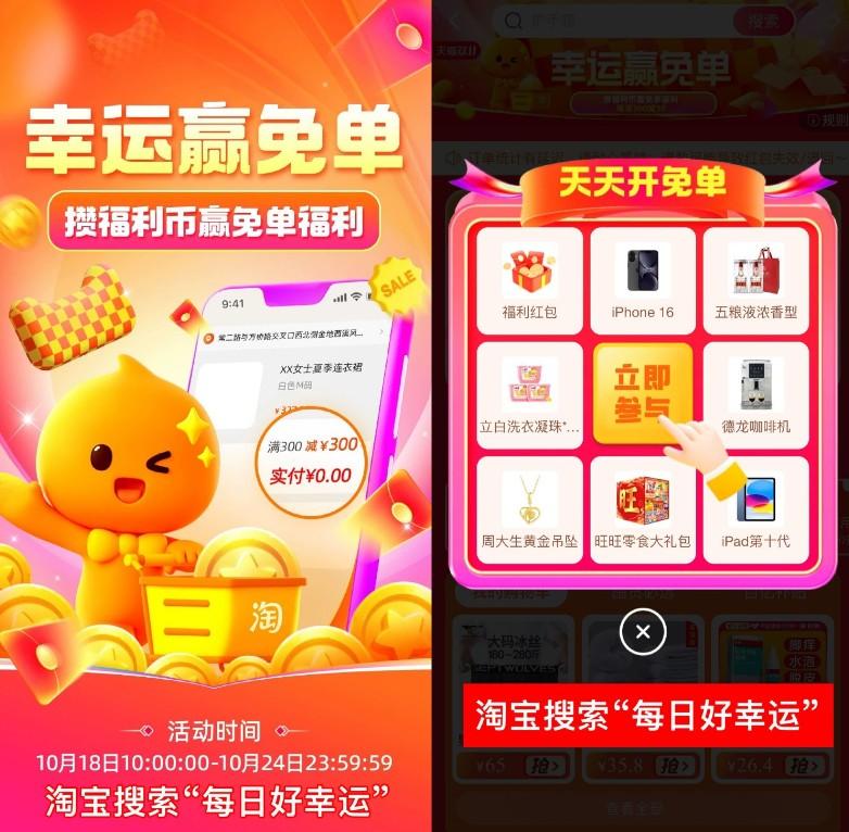 淘宝双11幸运赢免单最高300元