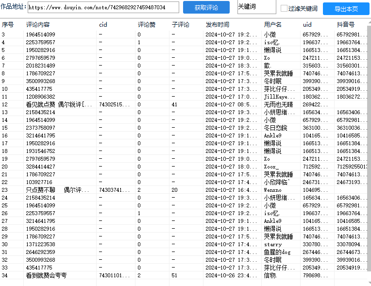 首发抖音评论采集