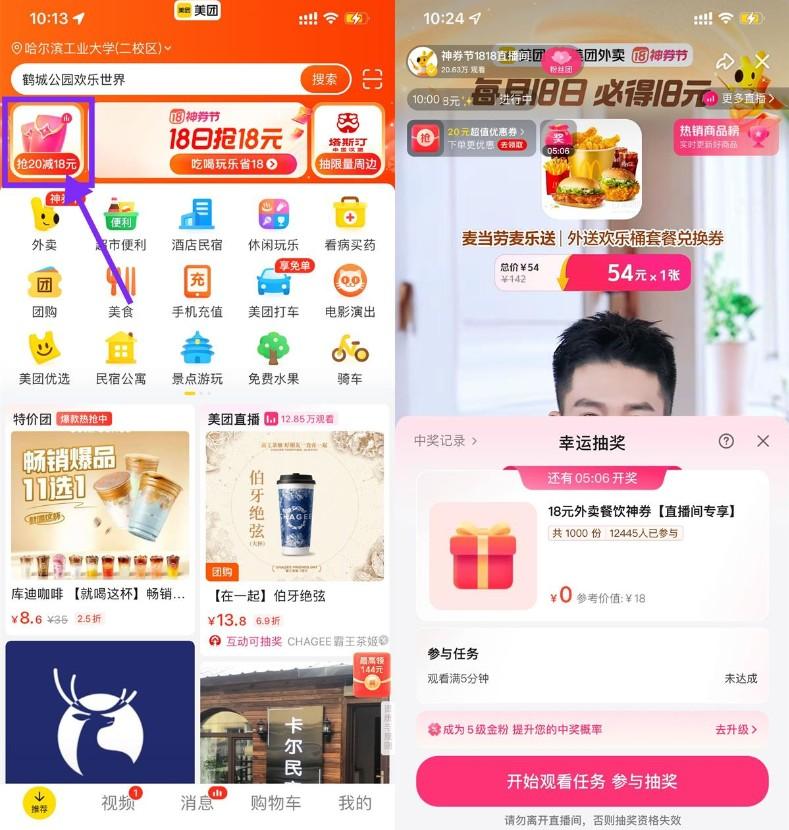 美团每20分钟抽18元外卖红包
