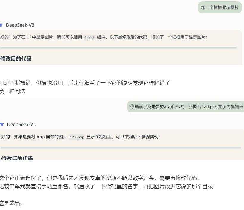 我以前学过安卓软件的开发,现在基本上忘得差不多,不过对一些基本的流程还是熟悉的,大模型刚开始火的时候尝试过,文心一言,Kimi之类的软件,但是把代码放进Android studio之后,报错的不少,修改起来很乱。