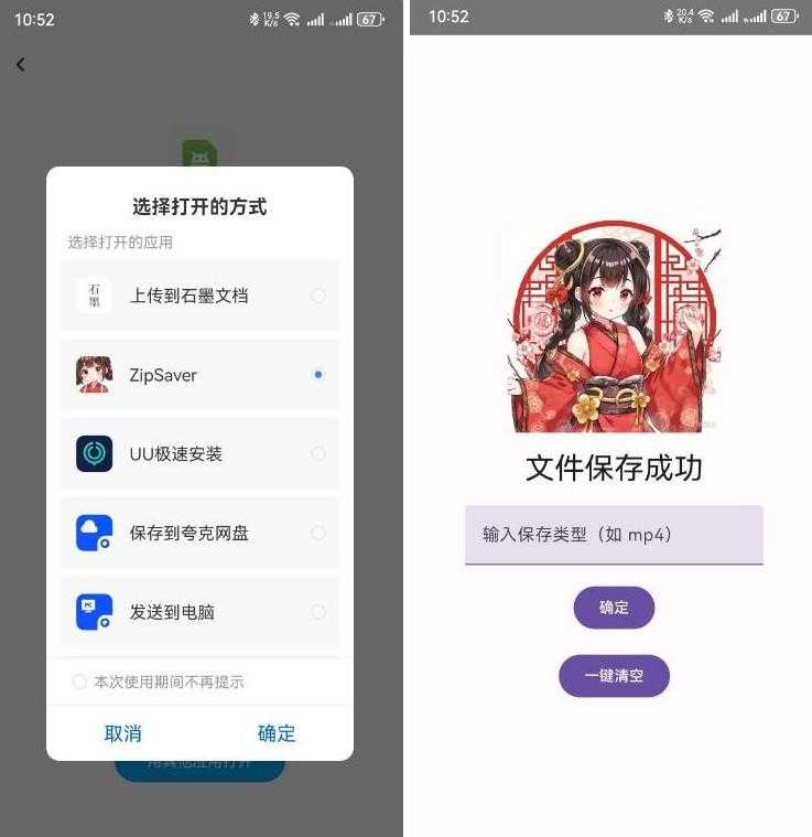 我开发的这个软件叫zipsaver,起因是我发现百度网盘直接打开200m一下的文件的时候是不限速的,还可以选择其他应用打开,,但是保存到本地的缓存文件是被百度网盘加了权限的,正常情况下打不开。不过百度网盘加载完文件之后可以选择其他应用打开,这个时候其他应用就有了读取这个文件的权限。