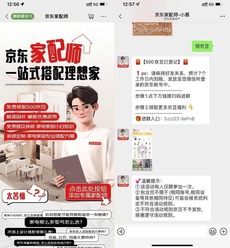 京东家配师直接领取500京豆