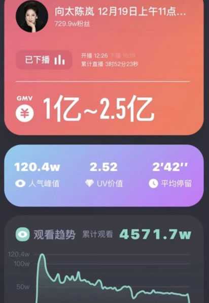 向太陈岚直播,首播破3亿