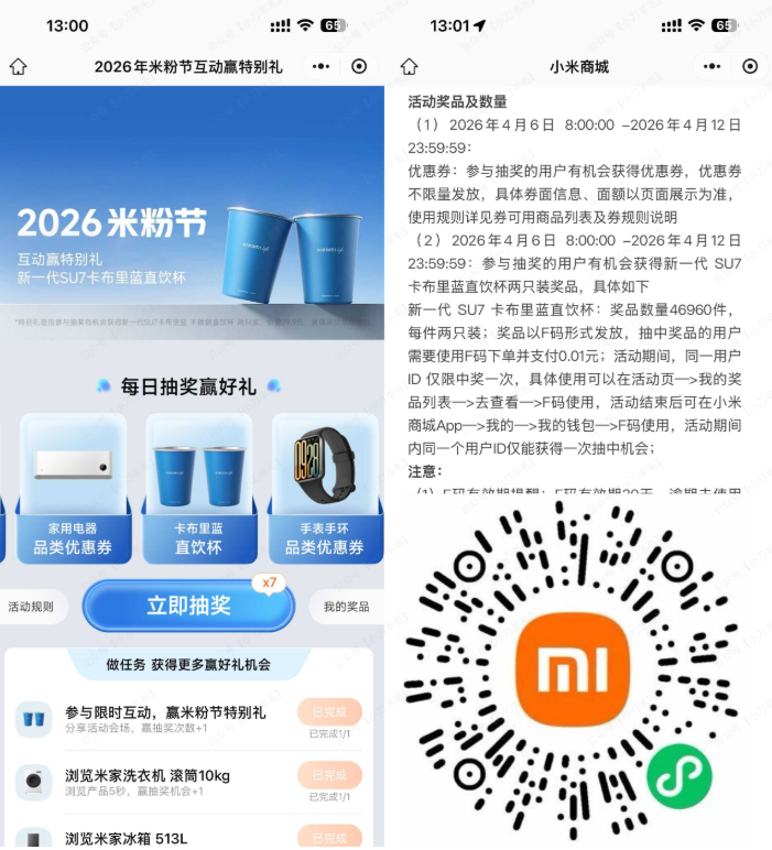 - 04-06 小米米粉节抽5万份不锈钢直饮杯