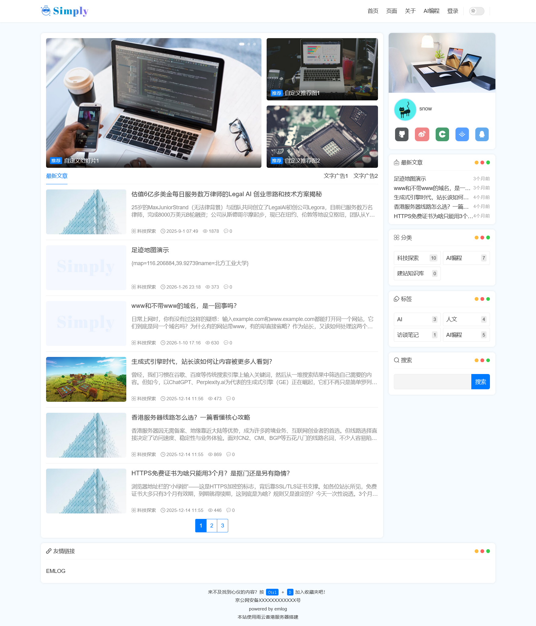 - 04-21 Simply简洁博客主题源码 | EmlogPro主题模版