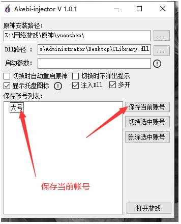 然后在游戏退出后就可以随意选中已保存的账号,点击[切换选中账号],再运行游戏默认登录的就是选中的账号。