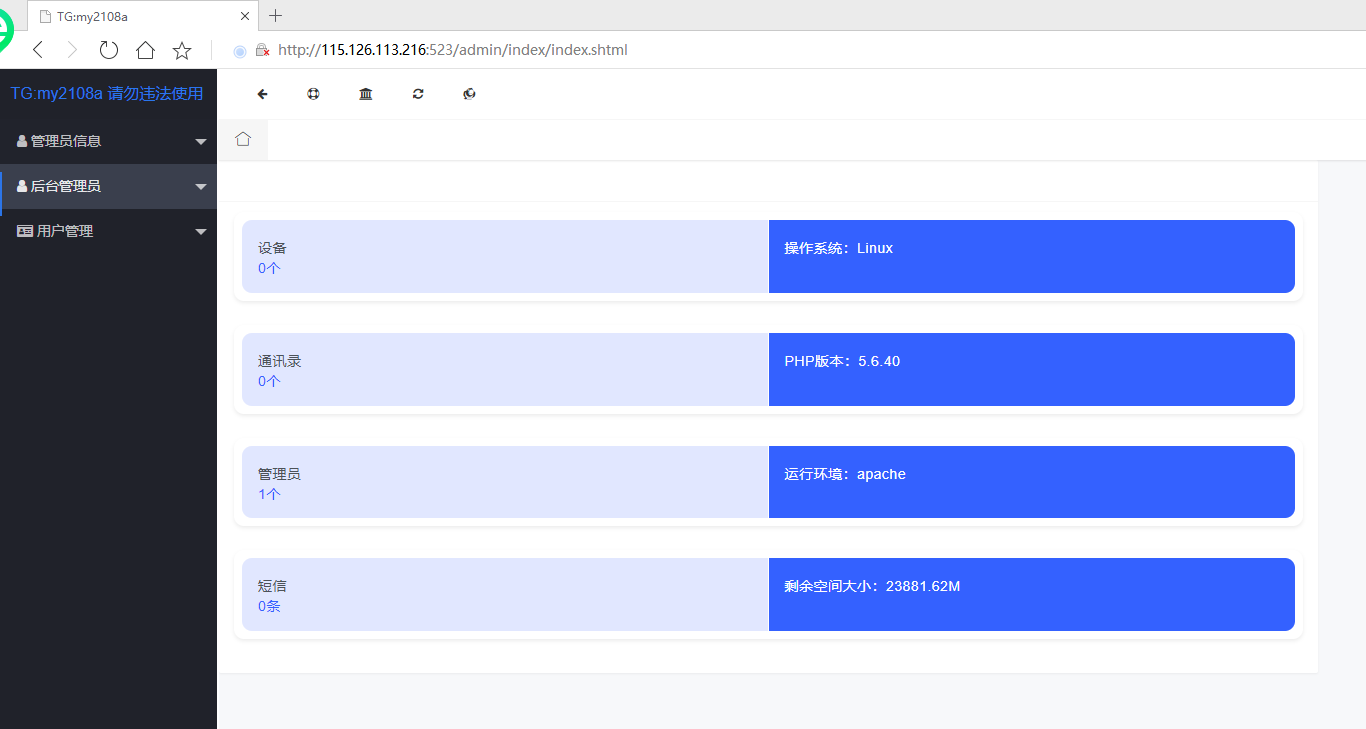 http://改为自己ip访问/admin/index/index.shtml