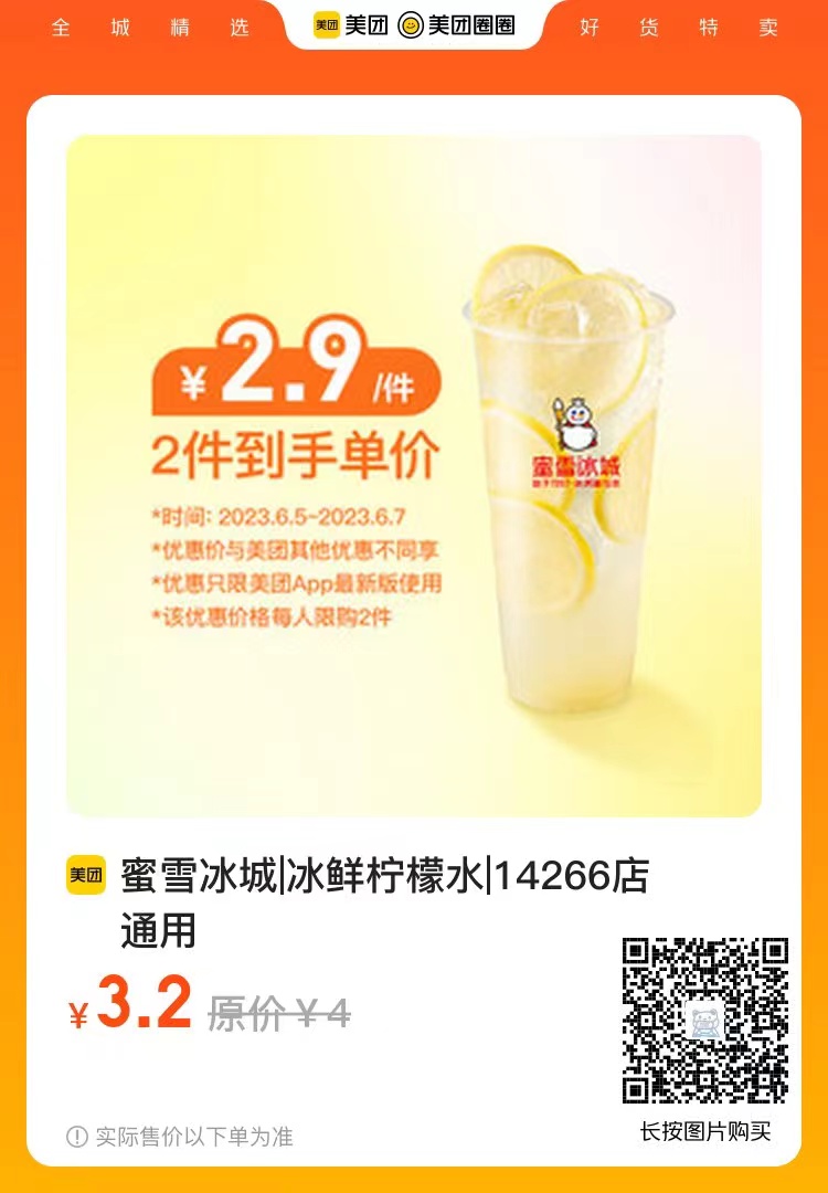 里面有个0.9的蜜雪冰城柠檬水 只要显示附近门店可以核销就可以直接用