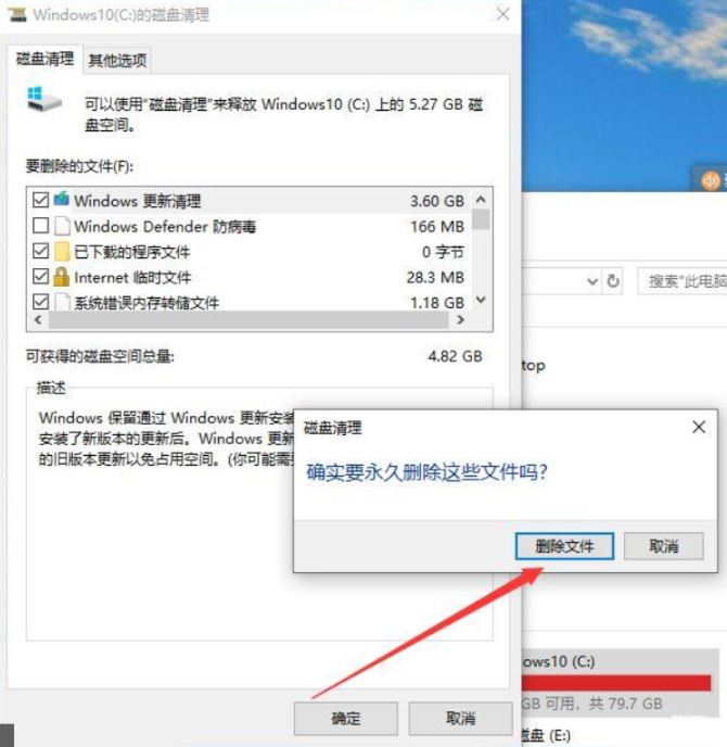 2、然后点击清理磁盘,选择在自己要删掉的垃圾文件