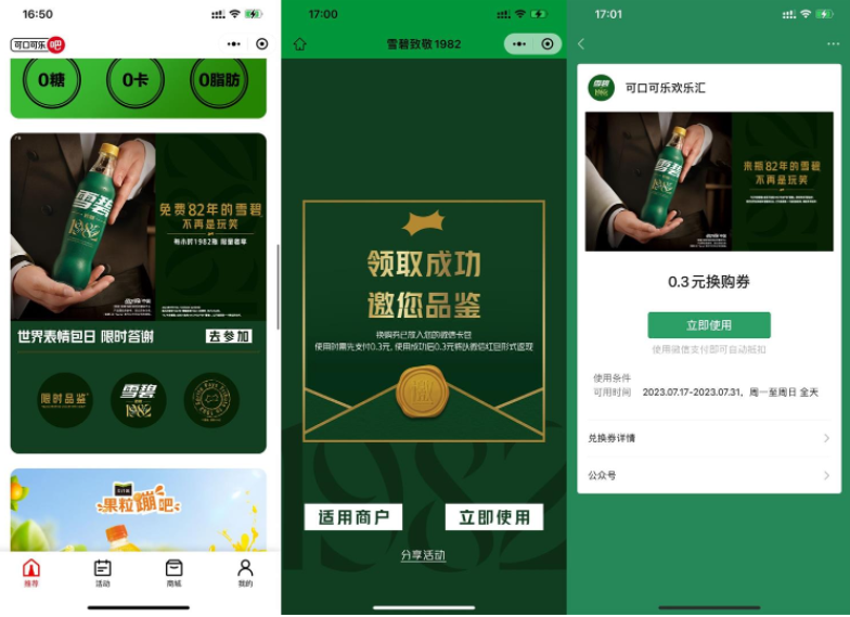 可口可乐整点免费领82年雪碧