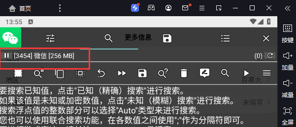 2. 打开GG和微信,在**微信-更多信息**这里点GG图标附加微信主进程,内存占用最大的那个就是