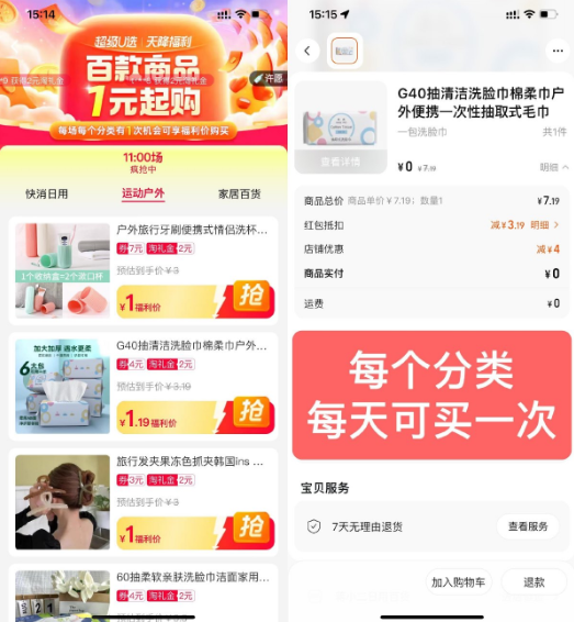 - 03-28 京东领4.1-4券0.1一次性毛巾1条