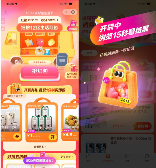支付宝生活节开袋抽1元实物
