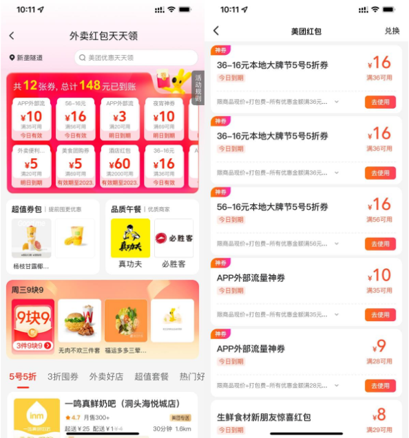 - 04-06 美团搜索【50555】半价外卖券