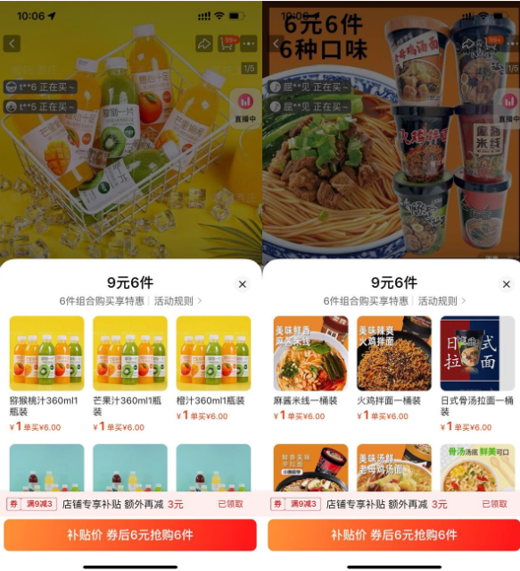 6亓撸6桶拉面方便面组合装