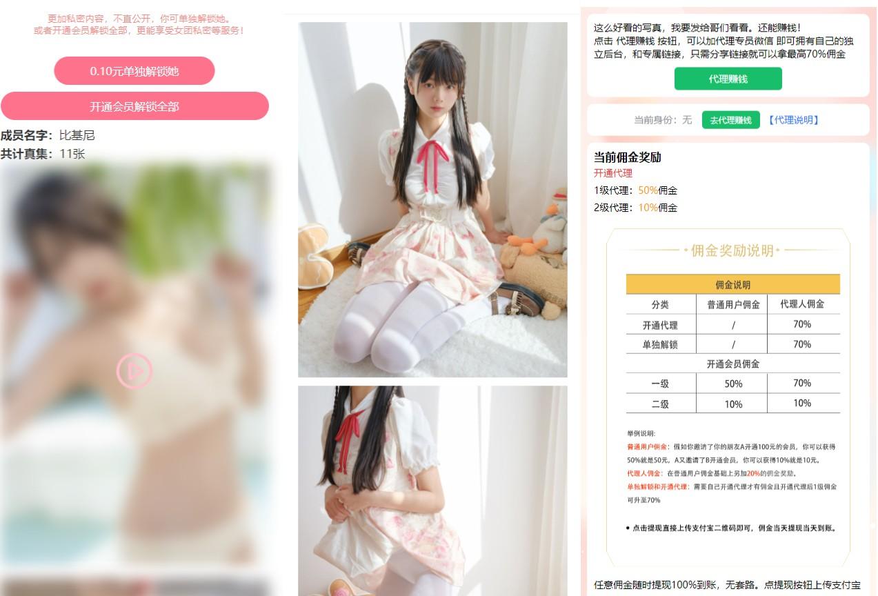 这是一款开源的写真图片及视频打赏系统源码,顾名思义他可以做写真图片打赏站也可以做视频打赏站,支付对接了易支付,拥有独立代理后台,全部源码无加密,另外也可以配合付费进群使用。支付扣量、域名防洪这些基本的就不介绍了,看图吧!留给有需要的人!请勿用于违法用途,否则后果自负!