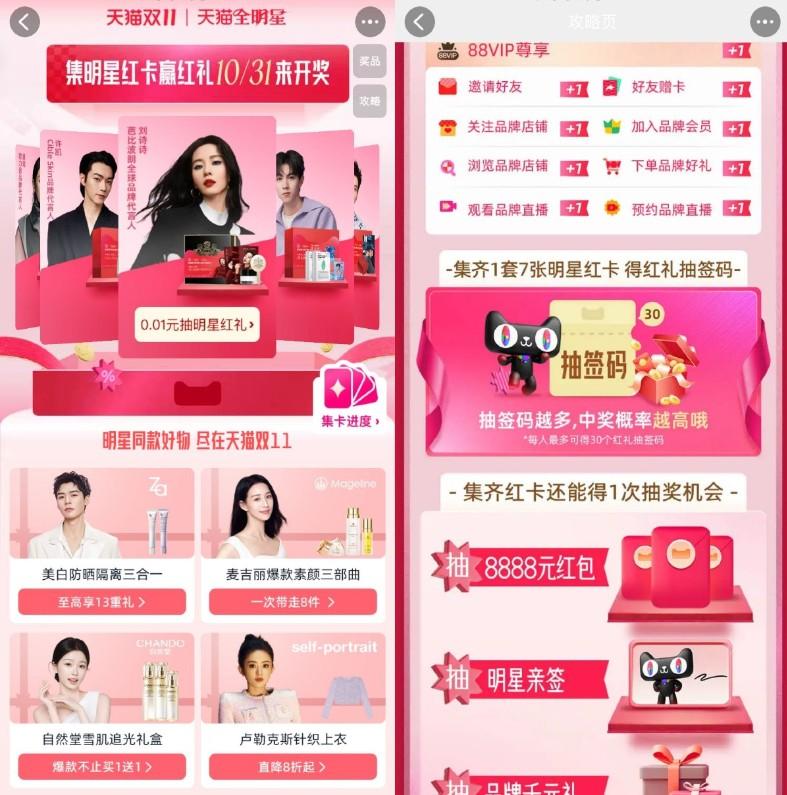 天猫全明星集卡抽实物或红包