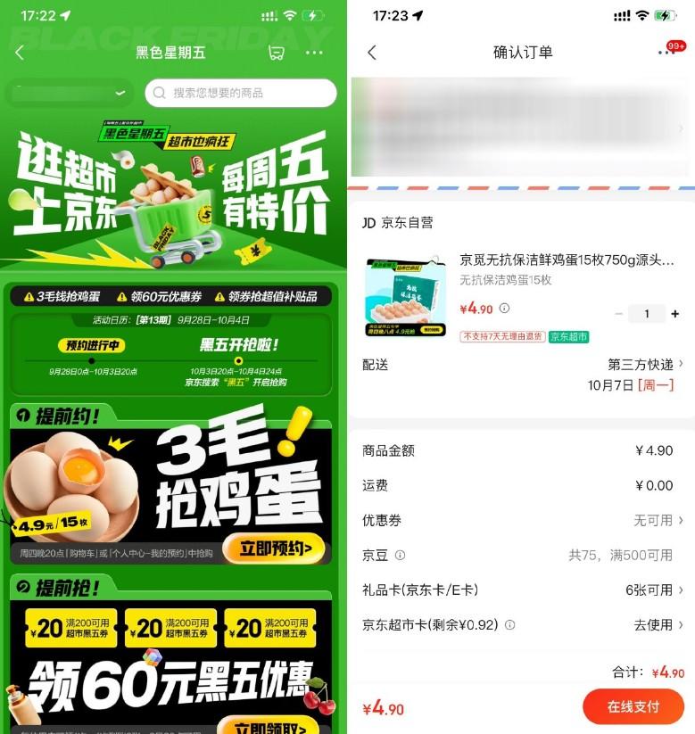 京东超市黑五4.9亓抢15枚鸡蛋