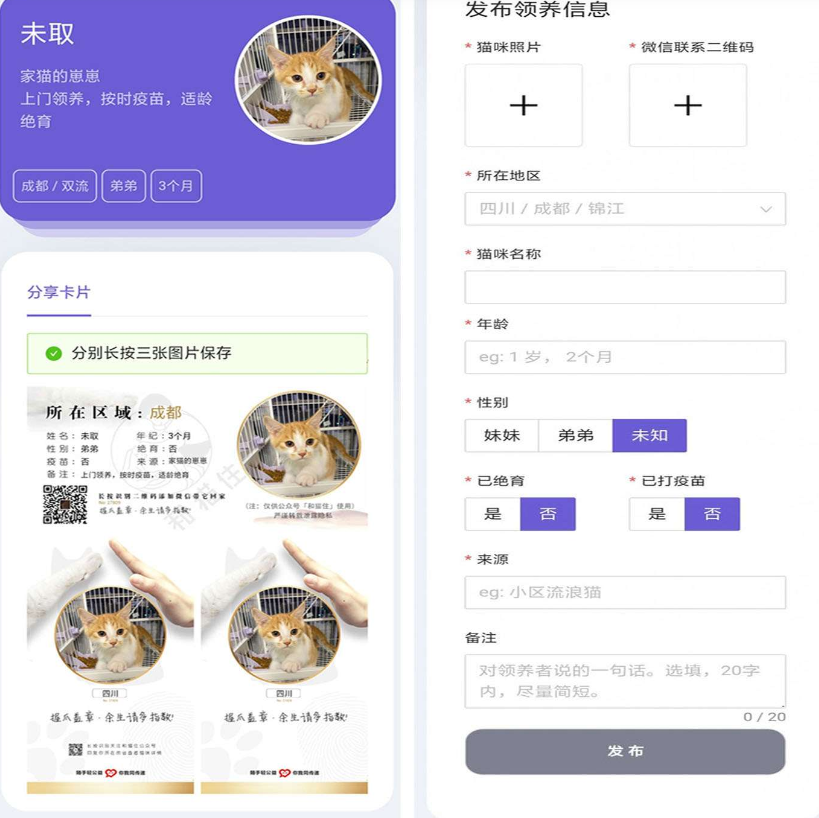 流浪猫流浪狗领养源码
