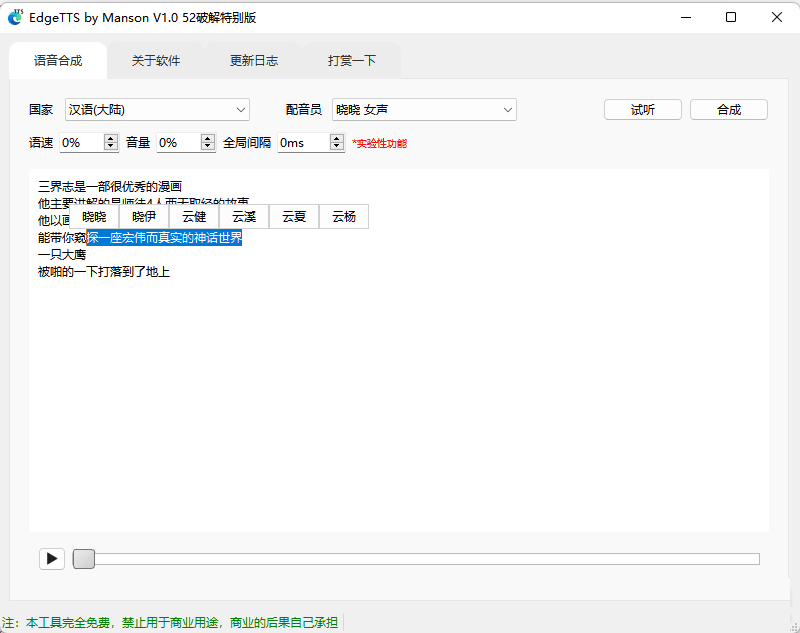 支持多人配音、全局间隔、免费微软配音工具