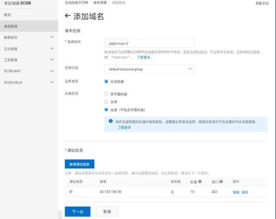 首先,你必须有一个网站,可以正常访问中国电信和中国联通,你还必须有一个外国CDN。我在这里使用的阿里巴巴云CDN加速了整个网站的运行。
