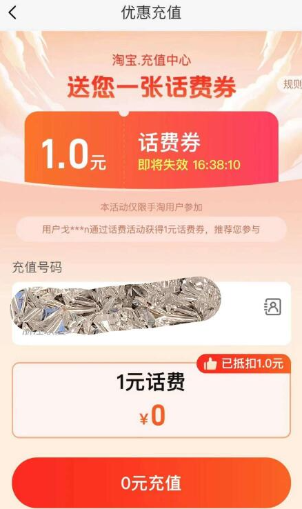 【活动介绍】淘宝0充2元话费