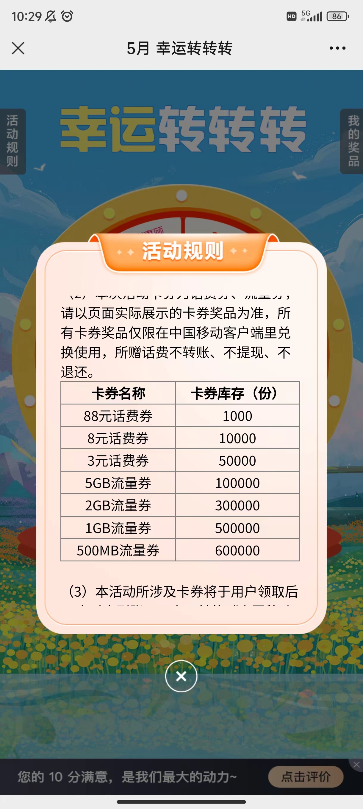 移动 5月活动 我领了8元话费