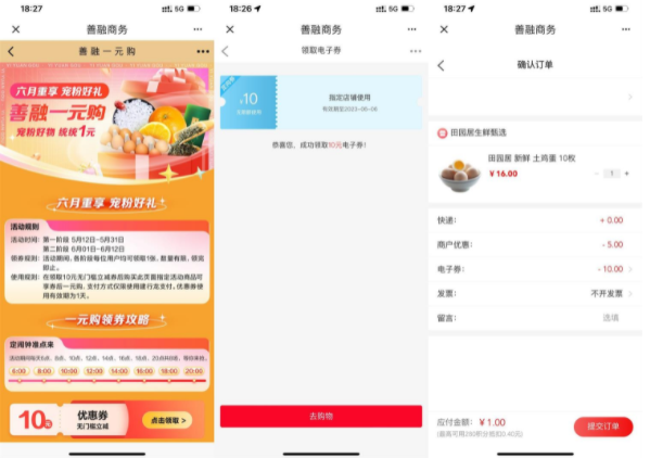 建行善融领10元券1元购实物