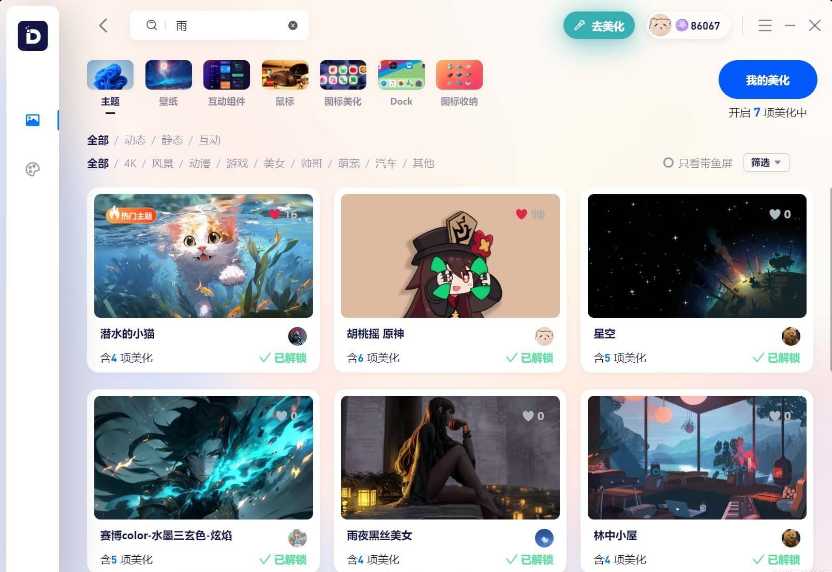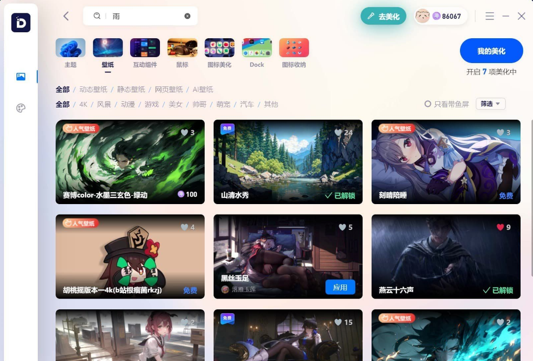 这个软件应该是一个新软件,用了一段时间感觉还不错,分享给大家看看,感觉他比其他软件方便在可以自己自定义桌面壁纸还有美化功能,一些小组件也挺好看的,还有个AI画图功能,我感觉这一个功能就可以让我玩半年,