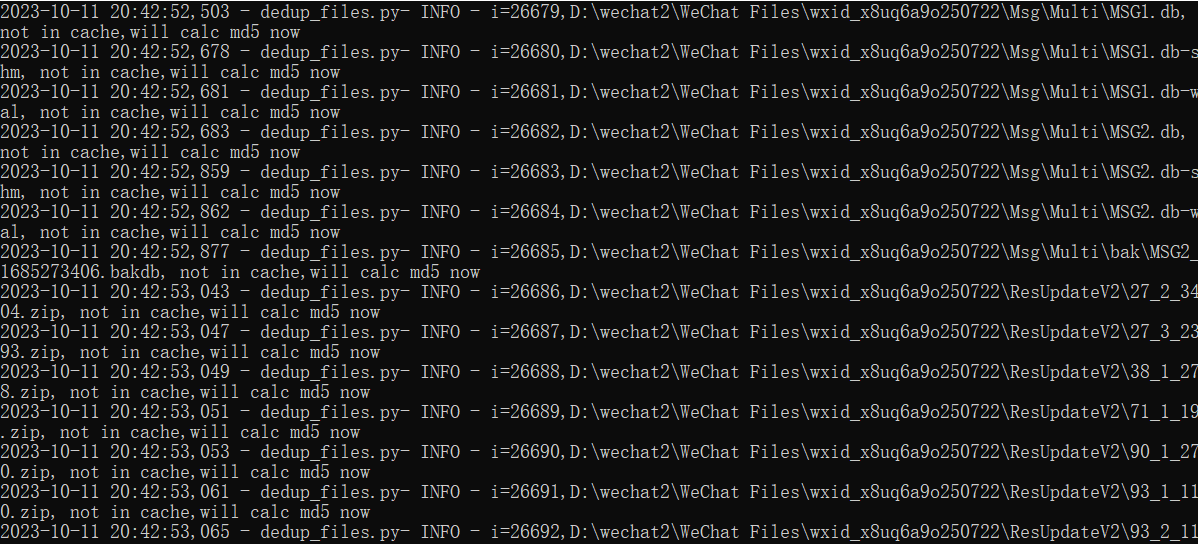 当然非微信的目录也是一样的可以文件去重。第一次执行时,它会自动生成一个dedup_files.ini的配置文件,