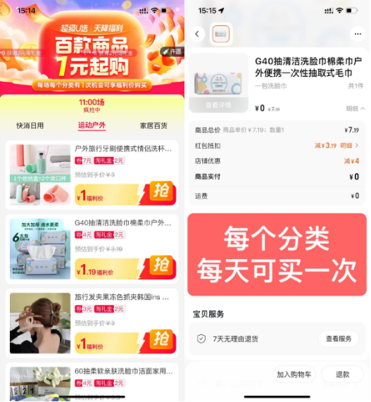 淘宝天降福利1元撸实物包邮