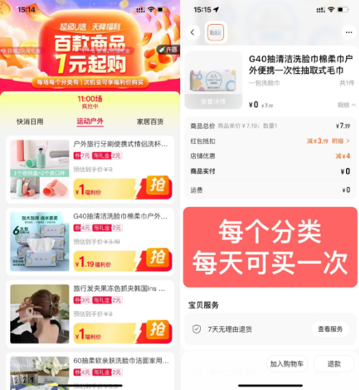 淘宝天降福利1元撸实物包邮
