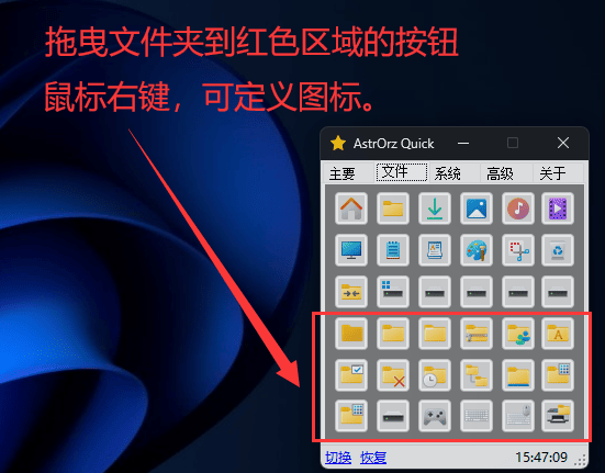 AstrOrz Quick 0.01 桌面快速启动软件(自定义按钮,一键隐藏桌面图标)【2024-1-18】