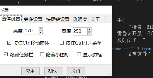 2、可设置鼠标移出隐藏/移入显示,全局快捷键隐藏显示。