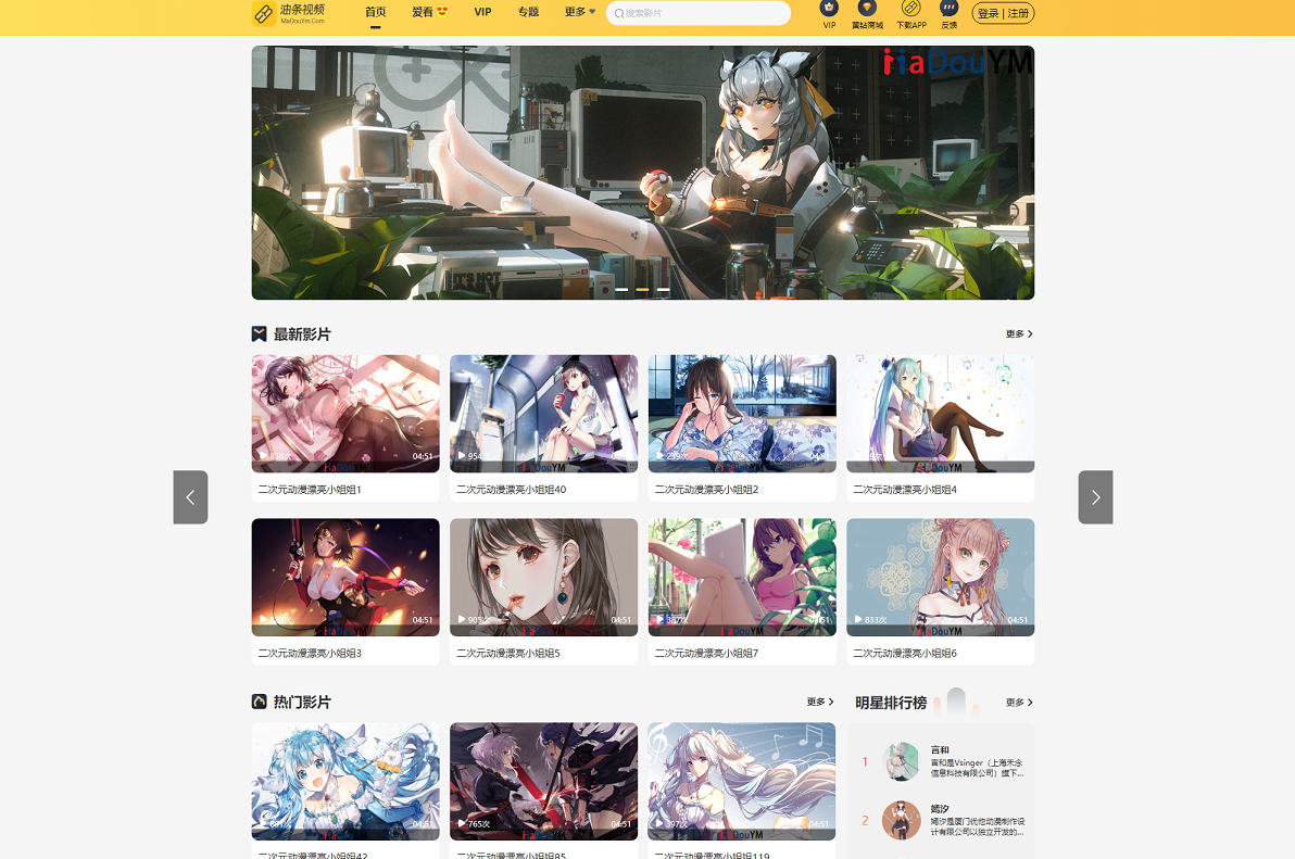 2. 视频,演员,专题,收藏,会员系统模块齐全,支持子分类,不再只显示单一的主分类